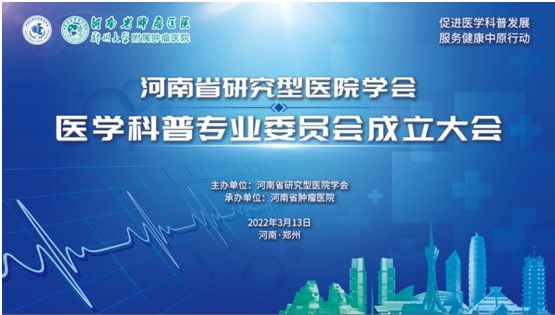为响应国家“健康中国”战略,践行河南省研究型医院学会“创新、转化、融合、提高”的理念,促进我省医学科普事业的发展,建立和完善健康科普专家库和资源库。经河南省研究型医院学会决定,特成立“医学科普专业委员会”。定于2022年3月13日在郑州召开“河南省研究型医院学会医学科普专业委员会成立大会”。现将有关事宜通知如下: